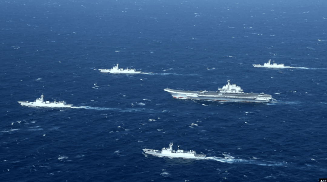 中国海军航母编队皇冠信用网出租足球 。(图源:法新社)