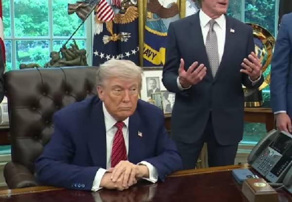 特朗普23日在白宫发表讲话视频截图