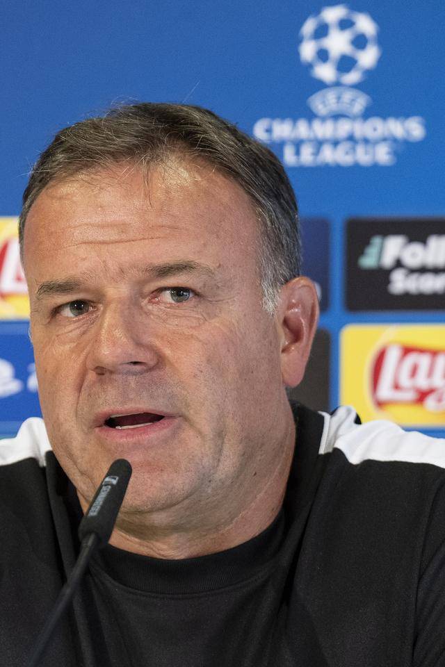 8月20日,伯尔尼年轻人队教练拉门出席新闻发布会皇冠足球网站。新华社/欧新