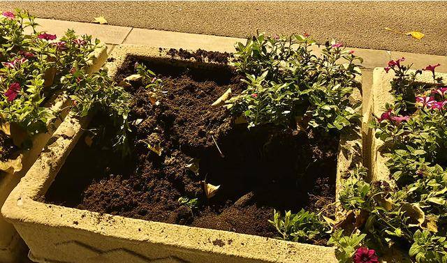 赵先生提供的照片及视频显示,多个花箱出现坑洞,其中一个花箱里只有土壤和一副白色手套,花箱外还有散落的土壤皇冠信用網会员账号。与周边花团锦簇相比,这个大坑洞夹在中间十分显眼。