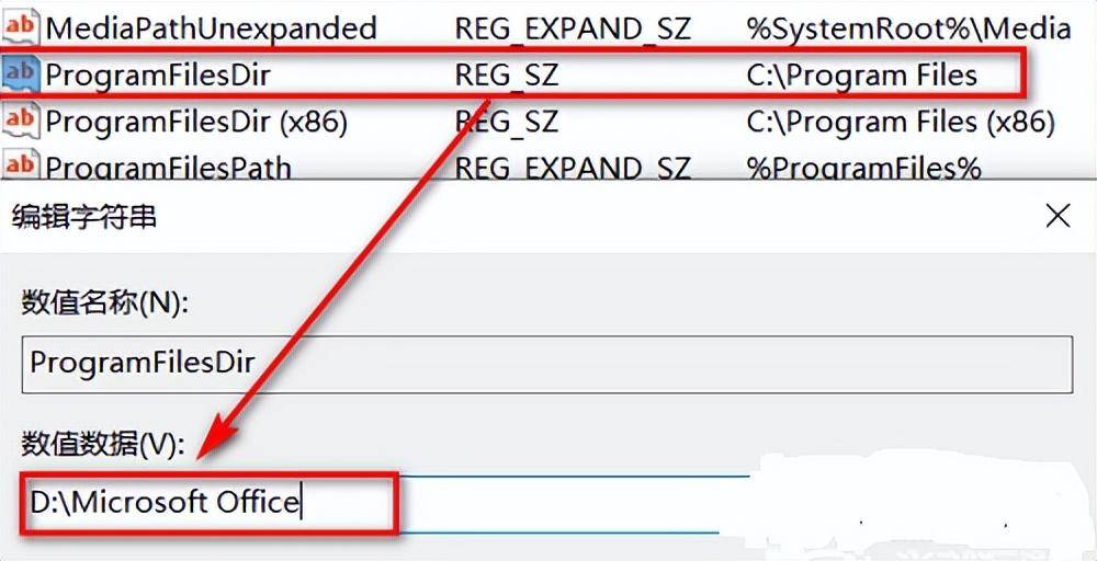 3、把上面这三项注册表的值改为office安装路径,例如“D:\Microsoft Office”就将这三项注册表的值改为此路径怎么注册皇冠信用盘。