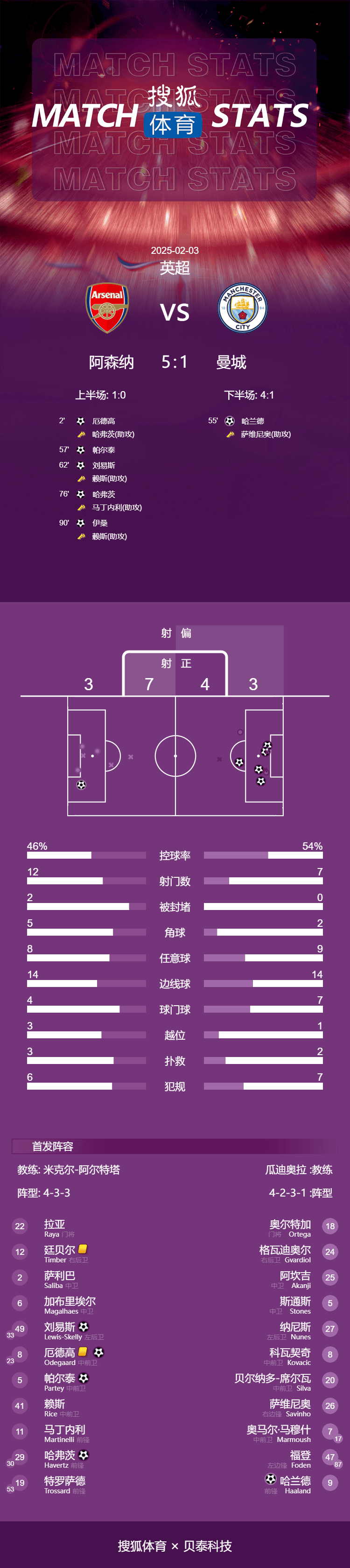 北京时间2月3日凌晨0:30,2024-25赛季英超联赛第24轮,阿森纳在主场迎战曼城皇冠信用网怎么申请。上半场比赛,阿森纳由厄德高闪击得手,随后马丁内利越位进球无效,哈弗茨失单刀,半场结束阿森纳暂时1-0曼城;下半场,哈兰德为曼城扳平比分,然而托马斯1分钟内迅速还以颜色,随后斯凯利、哈弗茨破门帮助阿森纳锁定胜局,终场结束前恩瓦内里将比分改写为5-1,最终阿森纳在主场5-1曼城,距离榜首的利物浦仍有6分差距。