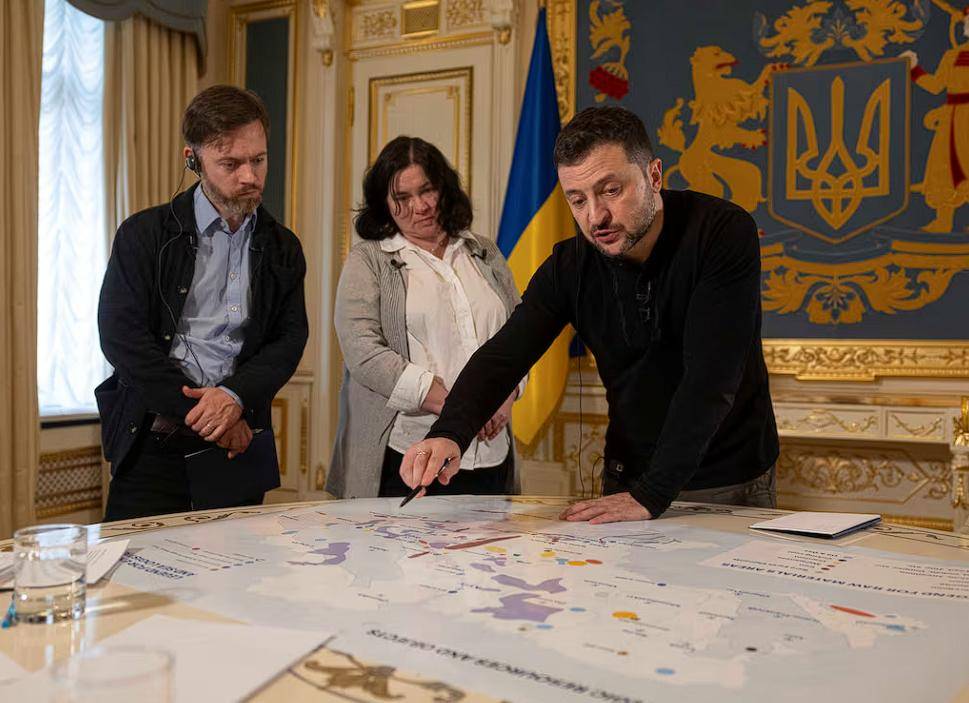 泽连斯基向记者展示乌克兰矿产资源分布图 图源:外媒