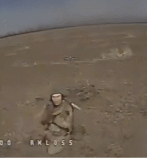 ▲一名落单士兵被无人机炸断腿后吞枪自杀