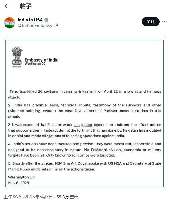 当地时间5月7日皇冠信用网平台 ,印度国防部就印军的“辛多尔行动”发布了一份声明,大概说了三点内容: