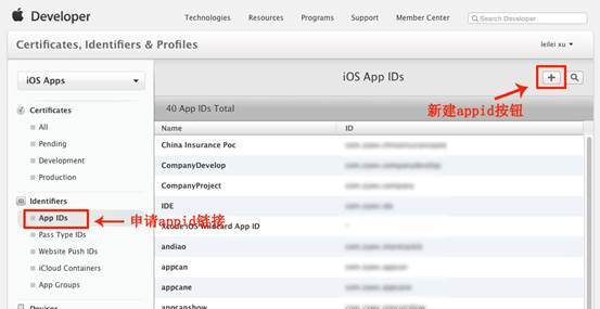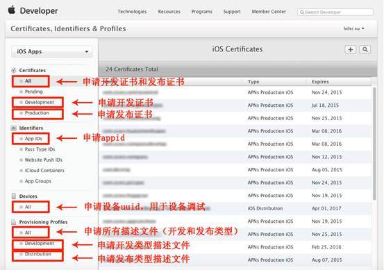 6、依次申请发布证书皇冠信用网账号申请,appid,推送证书(可选),设备udid(注册Devices用于设备调试【测试用】),描述文件