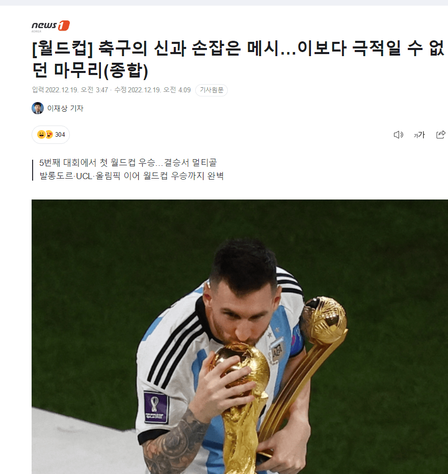另一韩媒snowball写道:GOAT的辩论结束,梅西同时拿下世界杯冠军+金球奖世界杯皇冠足球平台。本届世界杯之前梅西与C罗谁才是现役GOAT的讨论十分火热,可随着C罗连先发席位都丢掉其实已经失去了悬念,但人们就是在看梅西能否拿下冠军,只有世界杯冠军才能让这个争论完全平息,梅西做到了。